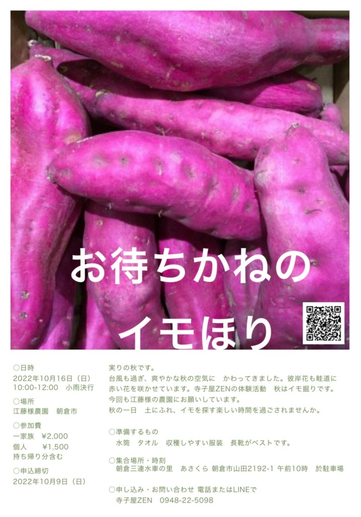 0948-52-3098 平日10時〜20時 その他の時間帯は、公式LINEかインスタDM(@terakoyazen)からどうぞ!