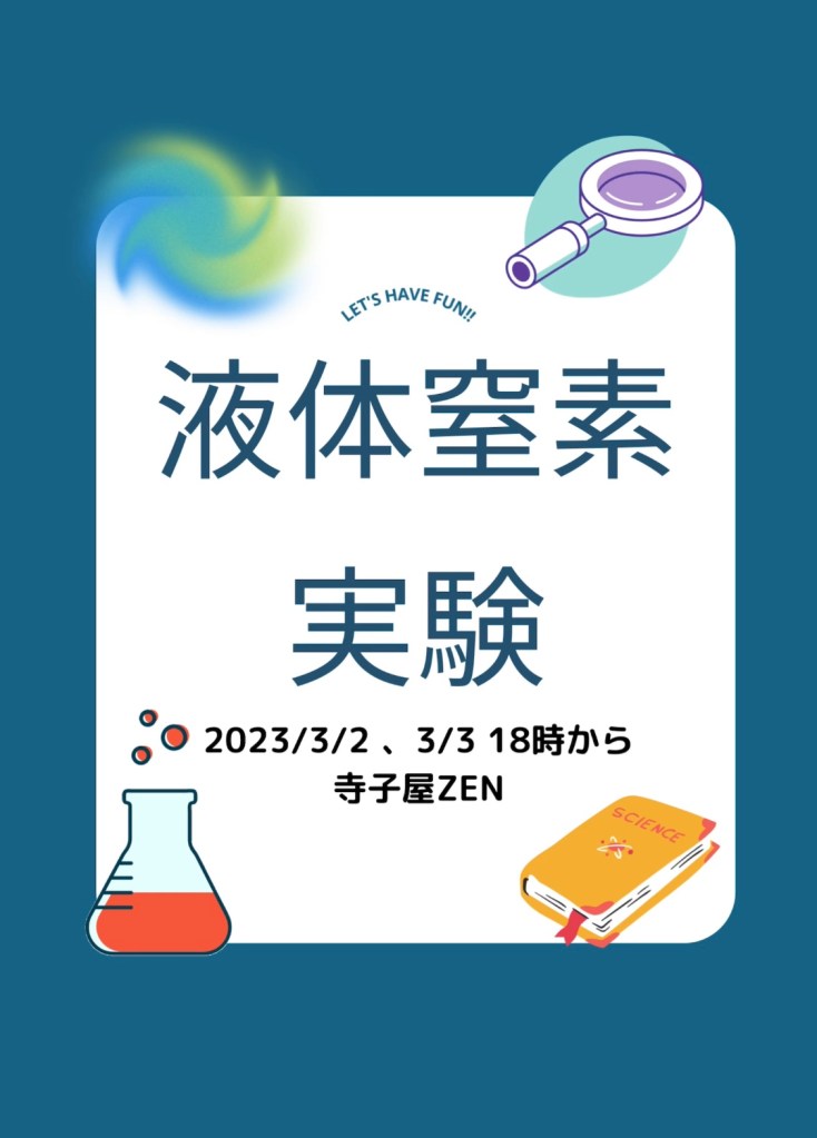 今週3/2、3/3 18時から19時まで液体窒素の実験を行います😆