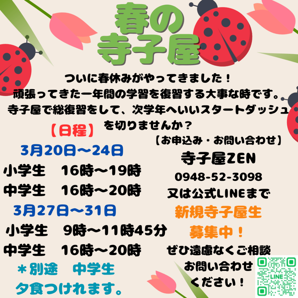 #株式会社zencorporation #寺子屋zen #飯塚 #飯塚市 #小学生塾 #中学生塾 #宿題 #中学数学 #中学英語 #中学理科 #高校英語 #福岡 #冬休み