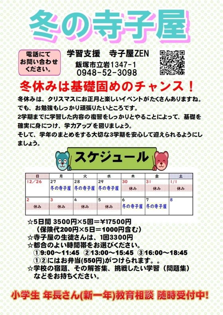 ☆内容 オンライン学習、プリント学習等の見守り(学習指導なし)