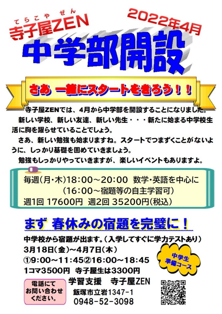 #株式会社zencorporation #寺子屋zen #飯塚 #飯塚市 #中学生塾 #中間考査 #2学期